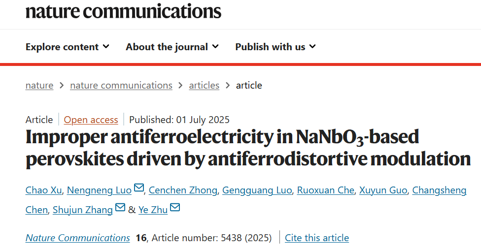 近年来,该团队紧密围绕关键金属基电介质材料开展科学研究,取得了系列重要研究进展。今年早些时候,该团队与香港理工大学、澳大利亚伍伦贡大学等单位合作,利用球差矫正透射电子显微镜首次在NaNbO3基反铁电陶瓷中观察到了非常规反铁电特性(Improper antiferroelectricity),并结合第一性原理计算证实该特殊结构主要由八面体畸变驱动。该结构的发现有望拓展无铅反铁电材料在功能领域的新应用,相关成果发表于Nature Communications(2025, 16, 5438),寸止挑战