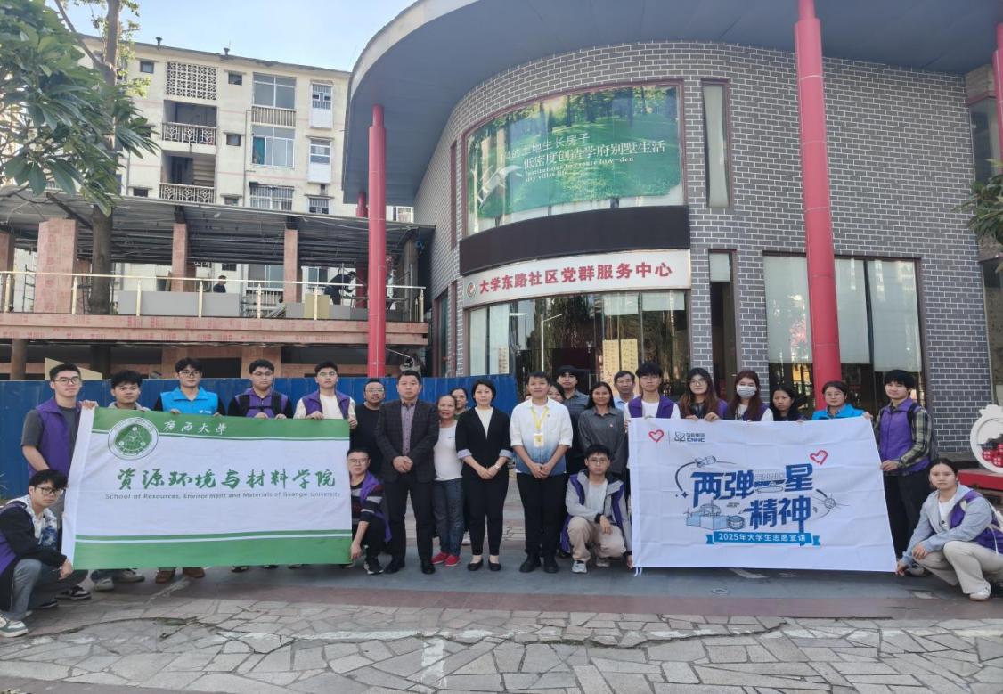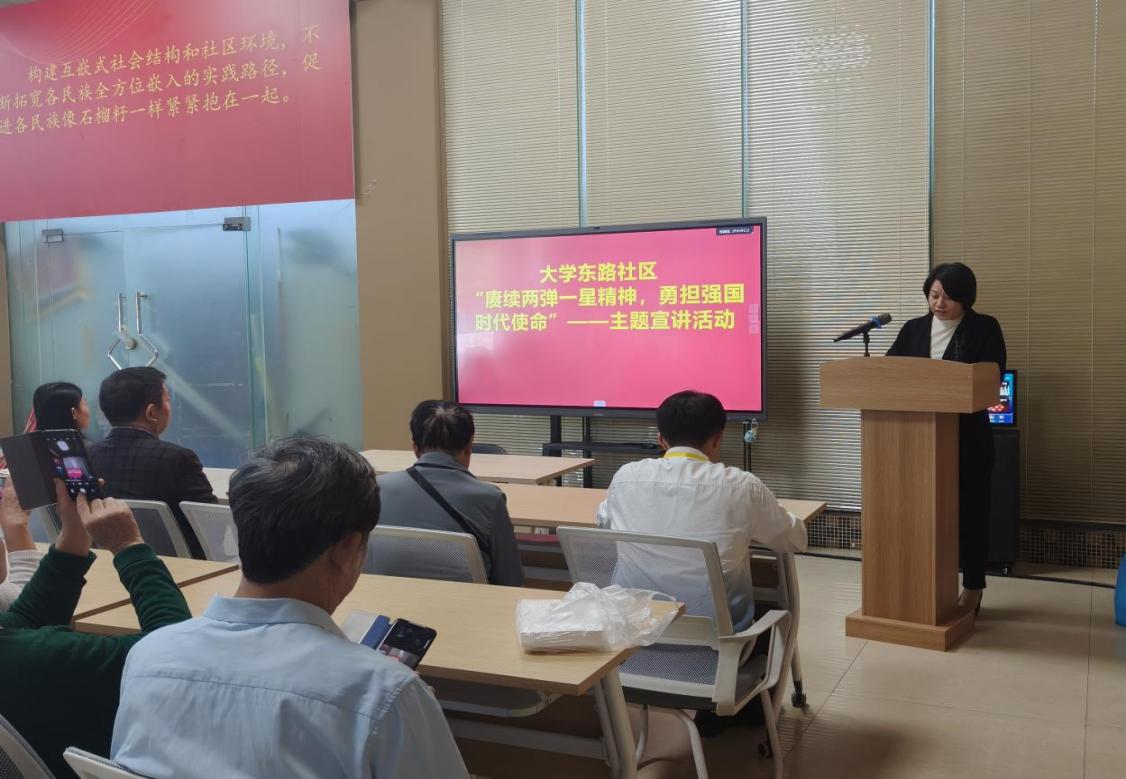 学工组陆一龙老师带领志愿团队,前往大学东路社区开展“赓续‘两弹一星’精神”主题宣讲与社区清洁志愿服务活动。