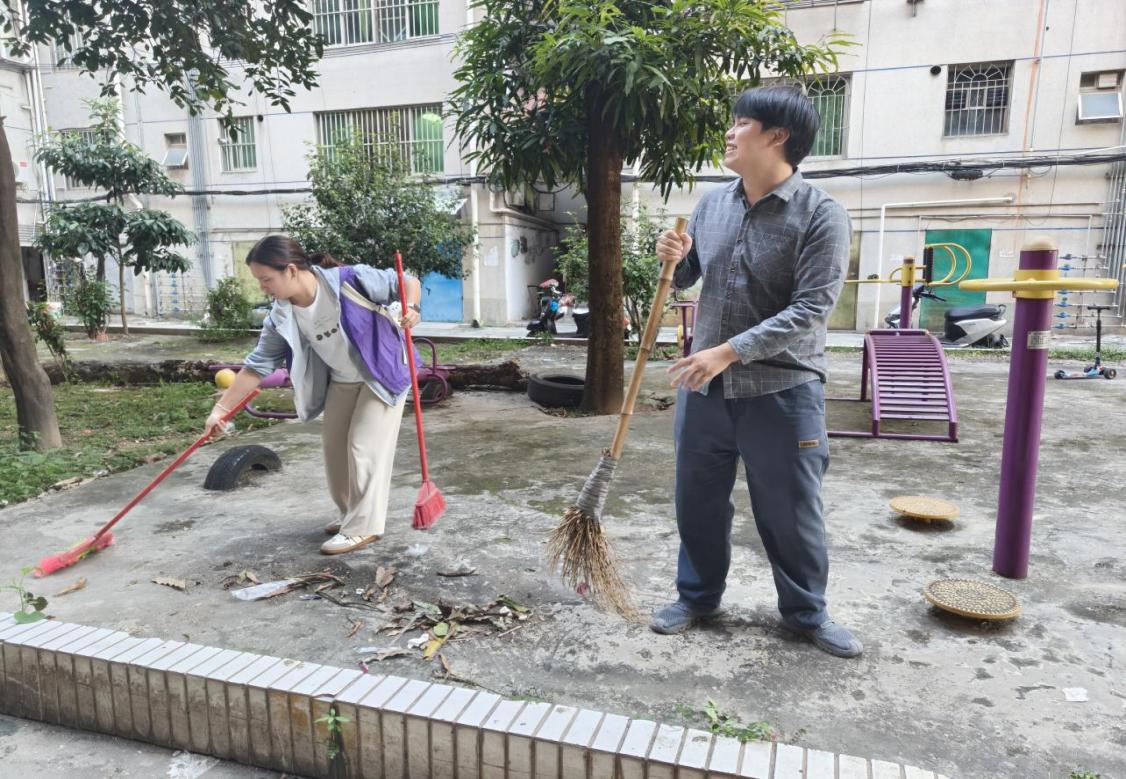 宣讲结束后,志愿者们开展社区清洁志愿服务活动。大家分工明确、默契配合,认真清扫道路、捡拾绿化带中的垃圾、擦拭公共设施。他们以热情和汗水美化社区环境,将“两弹一星”精神中的“无私奉献、艰苦奋斗”优秀品质从思想认同转化为具体实践。