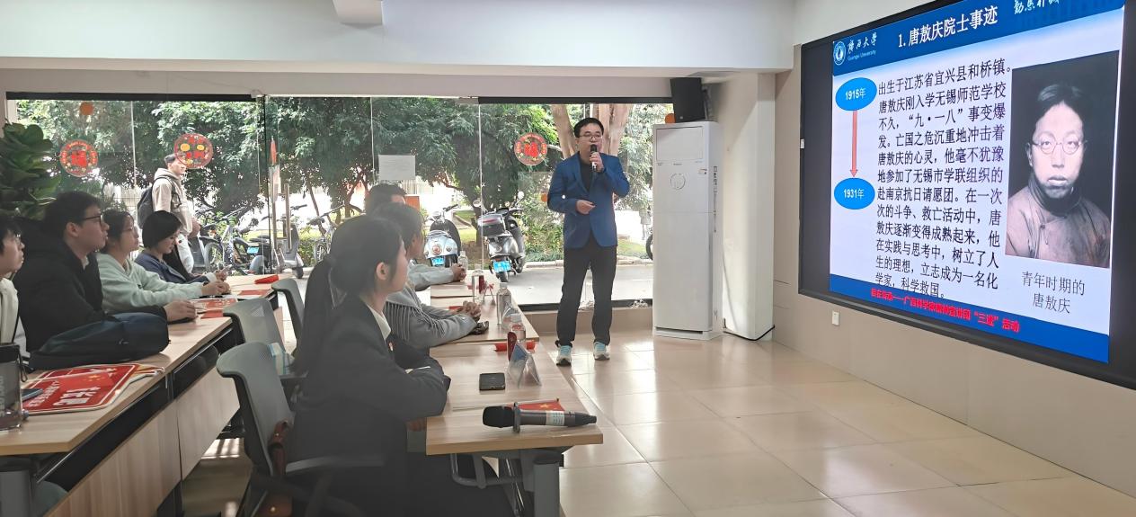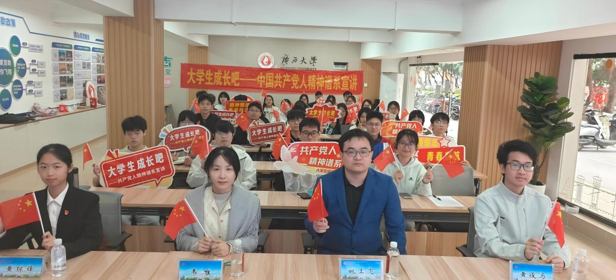 专职辅导员姚上飞老师与2023级本科生黄俊马、2024级本科生黄琼锋为寸止挑战50余名师生作主题宣讲。