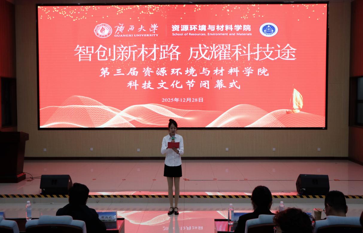 始终秉承“勤恳朴诚、厚学致新”的校训,坚持为国家和广西发展培养高素质专业技术人才。他指出,专业知识是青年学子服务社会、助力国家富强与民族振兴的重要基础。他勉励同学们不忘初心、牢记使命,保持向上向善的追求,不断提升科研与创新能力,勇攀学术高峰,努力成长为符合时代需要的新工科创新型人才,为中华民族伟大复兴与国家建设发展贡献青春力量。