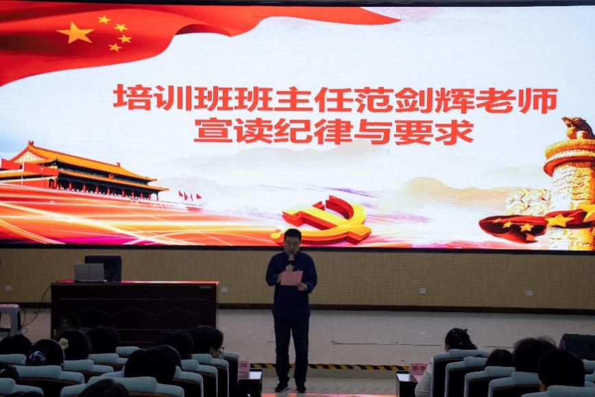 开班典礼在庄严的国歌声中拉开帷幕。范剑辉老师首先宣读了本期培训班的纪律与考核要求,明确了学习任务。他勉励全体学员珍惜此次学习机会,深化理论武装,坚定政治信仰,以实际行动积极向党组织靠拢。